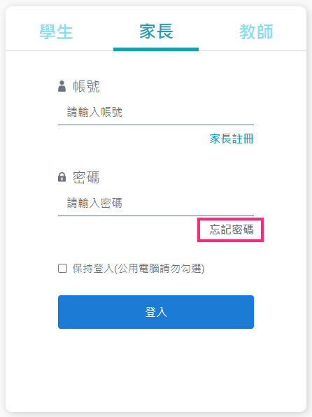 忘記密碼時請點選登入頁面的「忘記密碼」。
